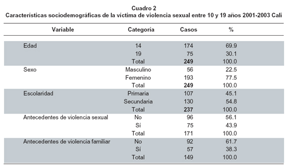 Characteristics of sexual violence in adolescents from 10 to 19 years of age, Cali 2001-2003