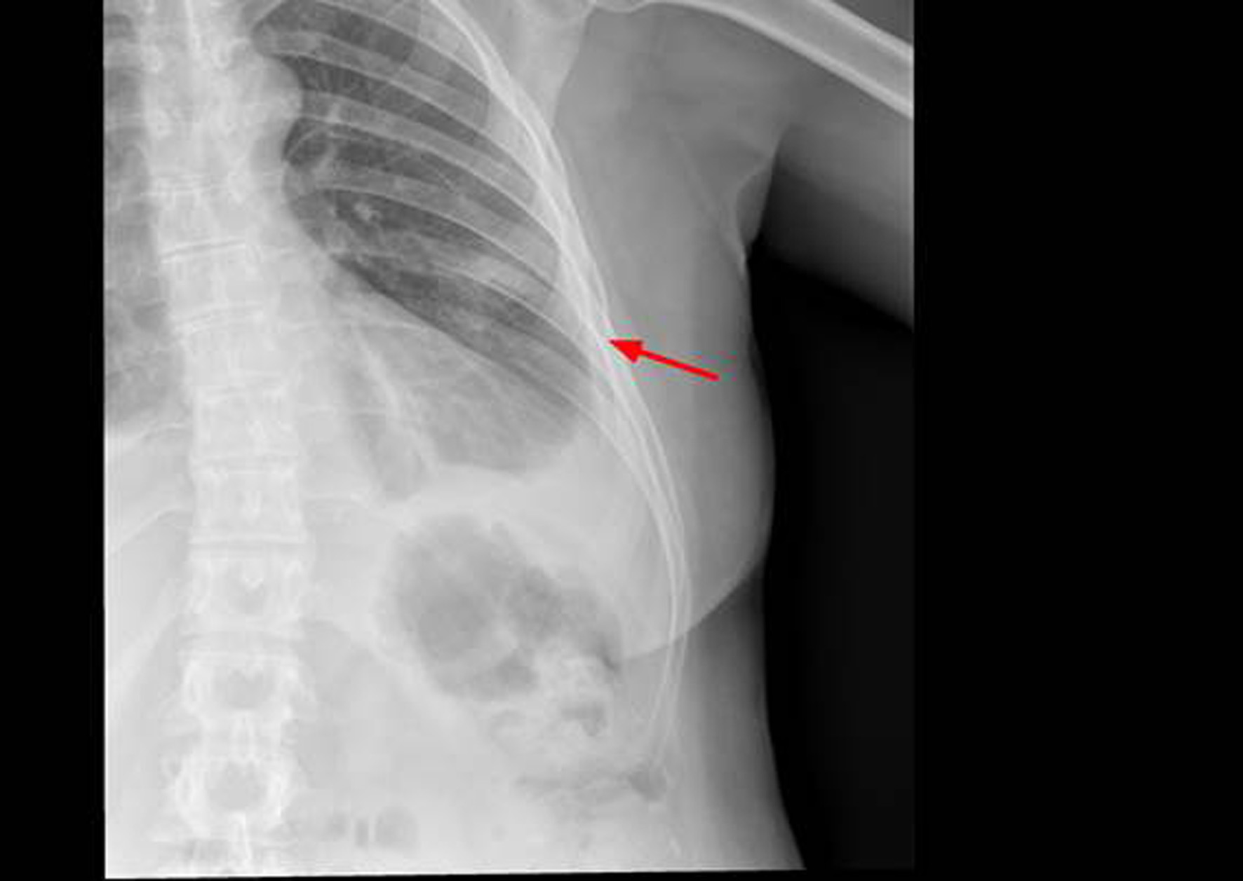 Figure 1. X-ray of left rib cage which may show partial disappearance of the 6th left lateral and anterior rib arch.