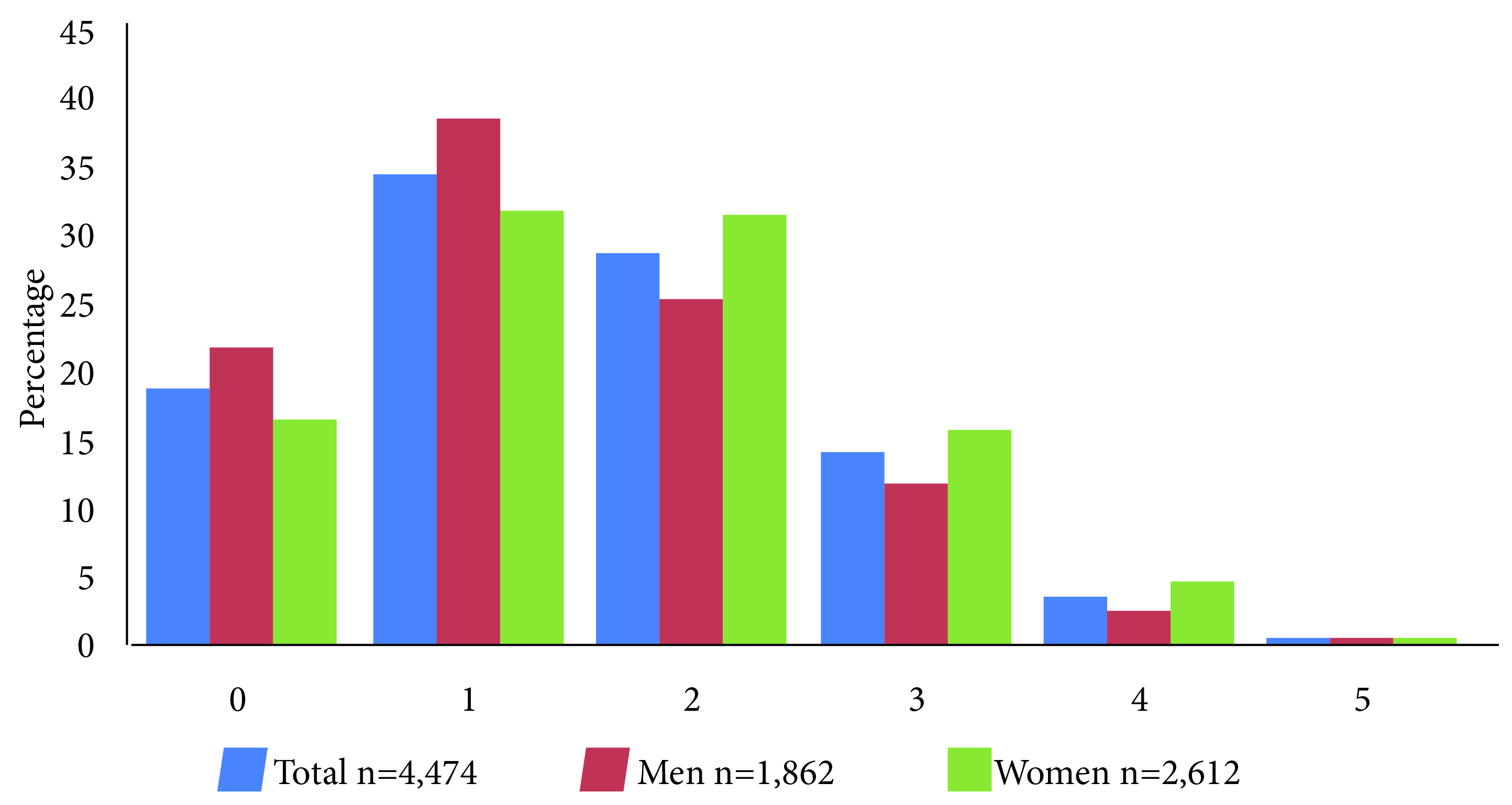 | Total n= 4,474 | Men n= 1,862 | Women n= 2,612 | ||