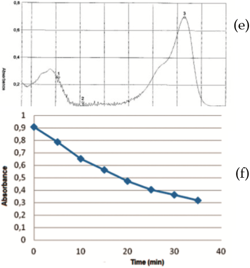 As with PEA 1, emission spectrum of NEA 2 exhibits a 400-650 nm band with a lmax = 481 nm that is not changed in an oxygen-depleted medium or in the absence of photosensitizer MB or RB, and when the mixture is not exposed to light, Figure 3(a). However, the intensity of this band is reduced upon exposure to light in the presence of oxygen and MB [Figure 3(b)] or RB [Figure 4(a)]. Furthermore, the absorption spectrum of NEA 2 exhibits a 330-440 nm band with lmax = 390 nm and, as expected, the absorbance changes upon exposure to light in the presence of oxygen and MB or RB [Figure 3(c) and Figure 4(b), respectively]. Experiments with NEA 2 and MB also demonstrated that this photosensitizer is not bleached during illumination [Figure 3(b)] whereas RB experienced photobleaching under identical conditions [Figure 4(a)].