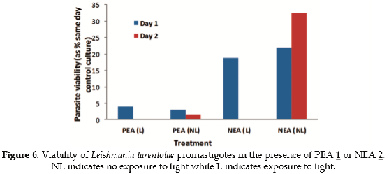 To determine if PEA 1 and NEA 2 exhibit cytotoxic activity, their antileishmanial activity was evaluated using a standard cell viability methodology (20,27). The results are shown in Figure 6.