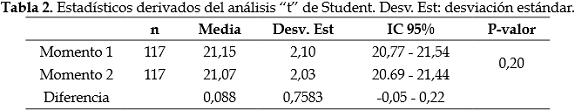Los estadísticos derivados de esta prueba de hipótesis se muestran en la Tabla 2.