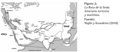 desde China a los países del Medio Oriente y hasta el Occidente completo (Curatola y Rubin de Cervin, 1990). Hoy en día, a lo largo de todo el recorrido todavía se encuentran huellas de los pueblos, de las ideas y de las mercancías que le dieron vida a esta ruta comercial.