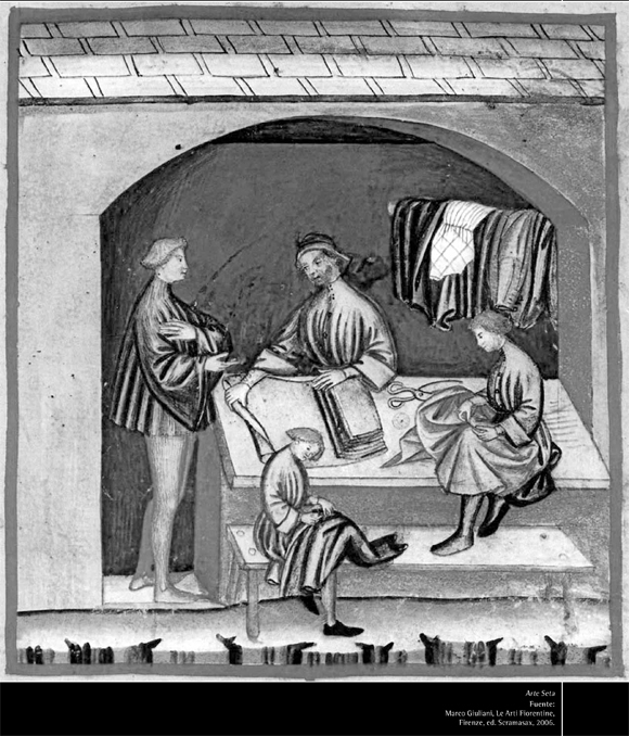 El gusano de seda no llegó a Occidente sino hacia el año 582 d. C., gracias a dos monjes que donaron la semilla al emperador Justiniano. De Bizancio, los árabes lo llevaron a España y, alrededor del año 1000, llegó a Italia y, más concretamente, a Sicilia. Desde aquí, paso a paso, se fue difundiendo por toda la península (Bussagli, 1986).
