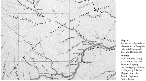 Preciso es confesar, que todos los conocimientos modernos (de los últimos 50 años), que tenemos de aquellas regiones apartadas (...) los debemos a los exploradores peruanos, o a extranjeros bajo la protección del Perú. El Ecuador no ha hecho nada, para, no digo adelantar, sino para conocer y conservar lo que cree suyo (Wolf, 1975/1892, pp. 227-228).