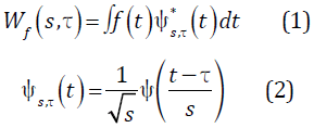 La transformada Wavelet de una función f(t) es la descomposición de la señal en un conjunto de funciones ψs,τ(t), que forman una base y son llamadas las wavelets, como se define en (1). Las wavelets son generadas a partir de la translación y cambio de escala de una misma función wavelet , llamada la Wavelet madre, dada por (2), donde s es el factor de escalamiento y τ es el factor de desplazamiento en el tiempo.