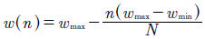 Dondew max yw min son los valores máximos y mínimos de inercia y N es el número total de iteraciones.