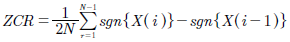 Para una señal descrita por un vectorX, la tasa de cruces por cero (ZCR) se calcula por pares consecutivos deXcomo lo describe la ecuación (11).