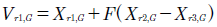 Siendo el pesoFun valor constante, yX r1, G , X r2, G , X r3, G vectores de la matriz de población en la generaciónG.