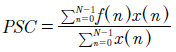 Siendox(n) el valor de frecuencia ponderada de una ubicaciónnen el histograma de la señal, yf(n) la frecuencia central de esa ubicación 54.