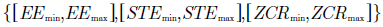 Los rangos de asignación factible de las funciones de pertenencia tienen en cuenta el valor mínimo y máximo por cada una de las entradas para el modelo difuso definidas en la Sección 4. Por ejemplo, para un modelo que utilice las primeras tres entradas, los rangos son los definidos en la ecuación (15).
