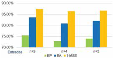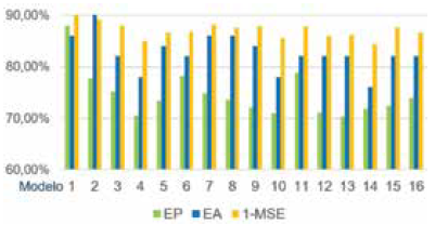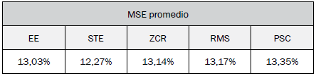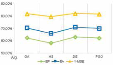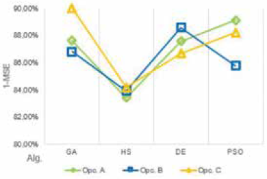 El MSE es el parámetro más usado en el propósito de prueba de modelos 63, y es usado en este artículo como indicador de desempeño (fitness) en los algoritmos de optimización.
