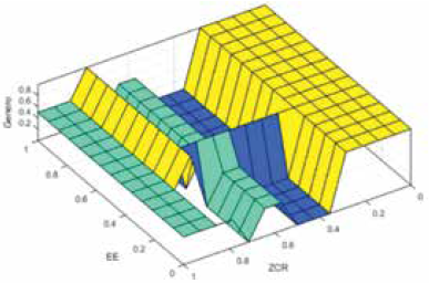 Algunos artículos, con el propósito de clasificar el género utilizan las entradas EE, STE y ZCR como características fundamentales de las voces 1), (6. En 46 se ha planteado que las entradas STE y ZCR pueden clasificar sonidos que se asocian a entornos específicos.