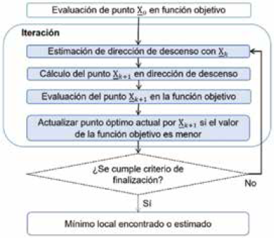 El método cuasi-Newton es un método de optimización basado en gradiente 43, útil en la optimización de problemas en los que se busca converger a una solución óptima local de una función objetivo a minimizar, partiendo de un punto inicial en el espacio de soluciones posibles.