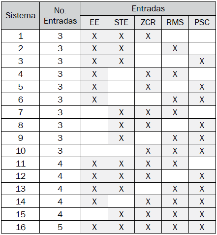 Los modelos difusos propuestos se diferencian principalmente en el conjunto de entradas y la cantidad de estas. La Tabla I muestra los modelos propuestos probados.