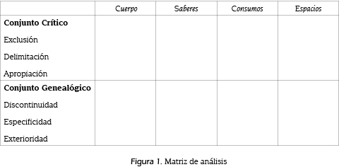 Inicialmente señalamos que desde la perspectiva de la construcción cultural de la juventud, y el papel que juegan las industrias culturales al proponer imágenes de ser joven, se utilizarán como categorías analíticas derivadas de la discusión teórica enunciada y que apuntan a los atributos culturales que recorren la constitución de lo juvenil: la construcción del cuerpo joven, los saberes que sustentan los discursos, el papel de los consumos materiales y simbólicos, y los usos y asignaciones sociales diferenciados respecto a los espacios institucionales y de sociabilidad reconocidos. El procedimiento de análisis discursivo, siguiendo a Foucault (1992:50), ha procedido a distinguir dos conjuntos operacionales: