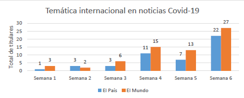 Gráfico 6 Número total de titulares de Covid-19 sobre temática internacional por diario.
