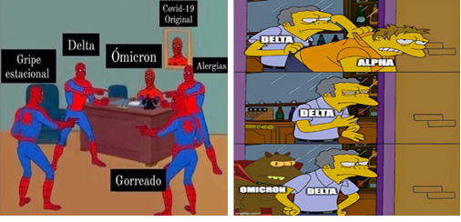 Pasaron dos años en los que se hicieron anuncios de nuevas cepas, brotes, olas, y al final tras la flurona, mezcla de gripe y covid-19, llegó la aparentemente última, o por lo menos la famosa final: Ómicron. De nuevo el humor y los memes, ahora algo confundidos y mareados entre nuevas variantes, gripes viejas y alergias de siempre. Quizás reflejo también de confusión médica y social. En todo caso humor, si no ingenuo, sí dubitativo, con resiliencia expresiva, adaptativa (Vanistandael, 2013); señala incongruencias y libera tensiones (Freud, 2008b; Martin, 2007), contiene ironía que raya con lo absurdo, evaluación y reflexión ante una situación (Ramírez, 2005).