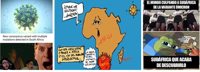 África adquirió un papel protagónico en memes y caricaturas que hicieron eco del descubrimiento del Ómicron en Suráfrica, aunque quizás no tanto como pasó con China; el continente recibió las miradas del mundo. Un humor irónico sí, a veces con signos de superioridad y agresión, menosprecio o burla, estereotipado y discriminatorio (Berger, 1999; Martin, 2007). Sin embargo, y para el caso de México, país con población afrodescendiente, no se detectó mucho esta segunda cuestión.