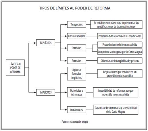 A continuación puede verse un esquema sobre las diferentes formas de límites al poder de reforma.