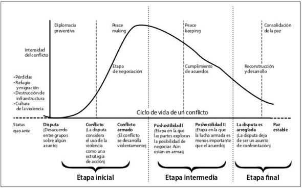 Figura 1. Etapas para el análisis y el manejo del conflicto colombiano. Acondicionamiento del modelo propuesto por Orozco en “De la negociación a la adaptación”