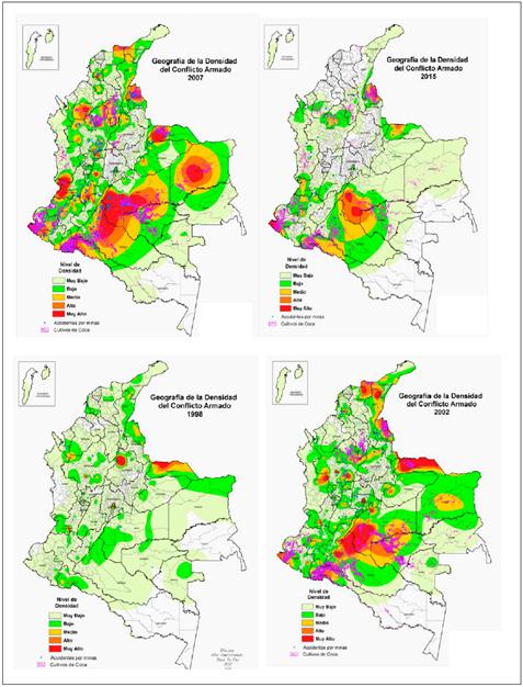 Figura 3 Dinámica multitemporal de la afectación territorial del conflicto armado en Colombia.