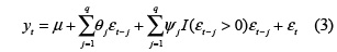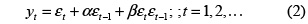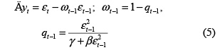 • Modelo no lineal de medias móviles integrado [18]: cuando el impacto a largo plazo de cada innovación es estocástico y variable en el tiempo. Se asume que q = 1.