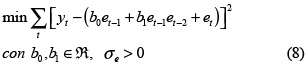 1. Si las innovaciones son variables determinísticas. En este caso se estimarían los parámetros de un modelo no lineal cuyas variables de entrada serían las innovaciones.