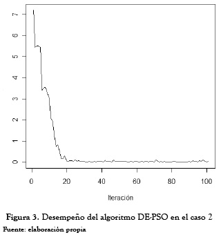 Adicionalmente, a partir de las realizaciones obtenidas para el caso 1 se observa que el algoritmo es capaz de hallar las estimaciones óptimas de los parámetros en menos de 20 iteraciones (ver figura 1). Para el caso 2, es necesario un mayor número de iteraciones (cercanas a 100); sin embargo, el costo computacional no es tan alto teniendo en cuenta la complejidad de este último proceso de estimación.