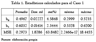 Caso 1: b0 = 0,4998, b1 = 0,5998, σ2 = 2,2466 × 10–17