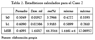 Caso 2: b0 = 0,4995, b1 = 0,5991, 2 = 2,4461 × 10–4.