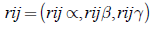 K es el número de los qué, m el número de los cómo y n el número de miembros del equipo, aquí cada uno de los elementos rij representa el nivel de correlación consolidado entra cada i-qué y cada j-cómo. Estos se representan mediante números triangulares difusos de la forma que se aprecia en la ecuación (3):