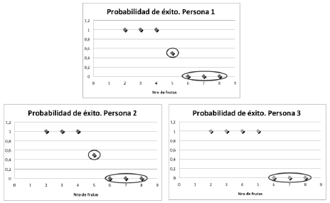 El facilitador reorienta el análisis hacia causas latentes, alejadas de culpables. En ese sentido, se compartió información expuesta en [17] sobre la probabilidad de éxito (pedidos conformes) de tres fruteros, según la cantidad de frutas de los pedidos (figura 4).