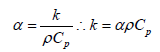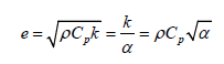 Donde k es la conductividad térmica, e la efusividad térmica, ρ la densidad y C p el calor específico.