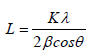 Donde L es el tamaño medio de la partícula; λ, la longitud de onda de los rayos X (1.5406 Å); K, un factor de forma que normalmente se toma con valor de 0.9; β, la anchura a media altura del pico con más intensidad del difractograma, expresada en radianes y θ es el ángulo de Bragg [32].
