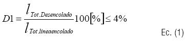 Porcentaje total de la desencolado en la linea < 4%, porcentaje máximo del desencolado en la probeta < 40%