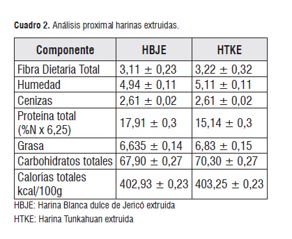 Caracterización de las harinas extruidas