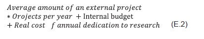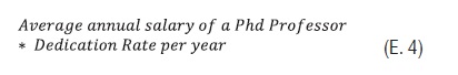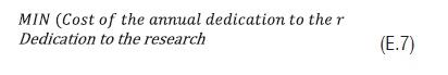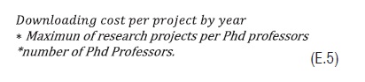 Maximum cost of annual dedication to the research, shown in Expression 5 (Eq. 5), according to the number of Phd professors, their rate of dedication to research and their average salary.