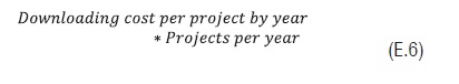 Eq. 5Expression 6 (Eq. 6) Shows the cost of the annual dedication to research, which corresponds to an assumed value, based on the number of projects per year and the downloading cost.