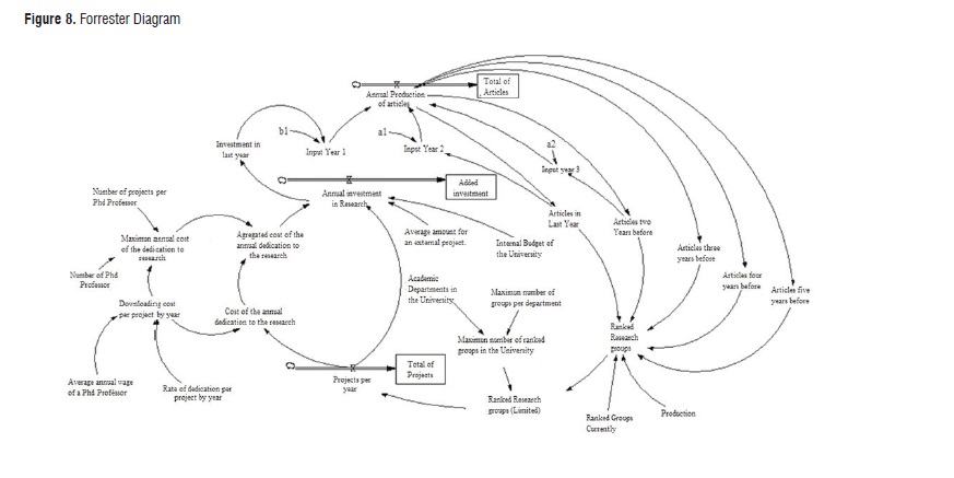 It is then discussed by the authors, whether future research will require alternate mechanisms such as those developed by the Agent Simulation Models, which has been used as a better alternative for adaptive systems (Ling Loo, Y.C. Tang and Ahmad, 2015). For now, it is clear that the present research is the first approach to the pilot University research system modeling, and that future efforts are required to determine the effects of changes in the policies considered, including scenarios about the dynamics of other research products.