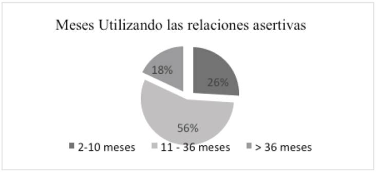 En la ilustración 6 se denota que de los 150 docentes encuestados, el 56% manifestó que lleva 11 y 36 meses utilizando la inteligencia emocional como lamento hacia la motivación para investigar, desde un enfoque de “feeling” y acompañamiento y sin regaños, más de asesoría y consultoría.