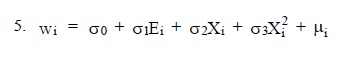 El salario (w)20 de la persona es función de los años de educación formal (E) y de la experiencia (X). El residuo está representado por µ. La aproximación más convencional a la función 4 es de la forma 21 ,