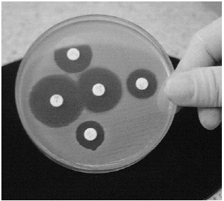 Figura 2. Prueba de sensibilidad antimicrobiana, técnica de Kirby-Bauer