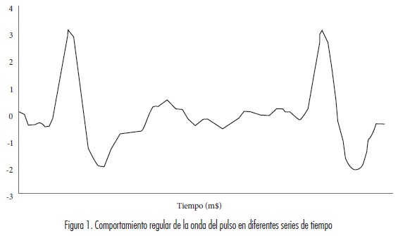 La evaluación de la FC permite, por lo tanto, estimar la carga de trabajo; para hacerlo, se puede recurrir a dispositivos tecnológicos modernos que permiten el registro continuo en función del tiempo o utilizar la frecuencia del pulso. Esta técnica ha sido retomada en los últimos años (13-15). En los estudios en los cuales se hace registro de la frecuencia del pulso, esta se considera como una técnica no invasiva de medición fisiológica. Las investigaciones se han centrado en el registro de la forma de onda de pulso de muñeca; este puede ser adquirido para la evaluación de la condición física. Subsecuentemente, se ha trabajado en el desarrollo de métodos no lineales de análisis diseñados para cuantificar su dinámica. Se cree que la forma de onda de pulso contiene la misma información de una señal ECG (ver figura 1), por lo que se considera que los datos contenidos en la onda del pulso arterial están subutilizados.