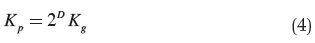 Donde Kp corresponde al número de la rejilla pequeña, es decir, el N(2-(k+1)), Kg corresponde al número del cuadrado de la rejilla grande, es decir, el N(2-(k)), y DF representa la dimensión fractal.