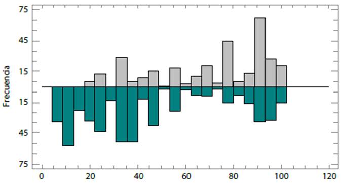 Las comparaciones de las distribuciones de las muestras, ejecutando pruebas de Kolmogorov-Smirnov, arrojaron que, para todos los casos, existe una diferencia estadística mente significativa entre las dos distribuciones, con un nivel de confianza del 95 %, ya que todos los valores de p fueron menores que 0.05.