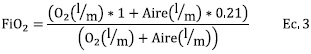 En el proceso para mezclar aire y oxígeno para producir el FiO2 se utilizaron mezcladores de aire y oxígeno. De esta forma el cálculo de la FiO2 se realiza mediante la siguiente ecuación:
