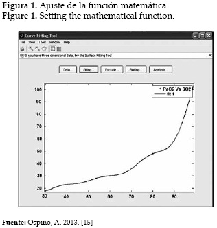 Una vez obtenida la ecuación que se ajusta al comportamiento de la curva, se calcula cuánto es la presión arterial de oxigeno actual según el valor de saturación que se está midiendo en el paciente [16]. A partir de ahí se empieza a operar con la ecuación que permite hallar un nuevo FiO2 necesario para estabilizar al paciente en un valor normal.