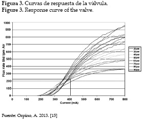 En la figura 3 se observan diferentes curvas de reacción de la válvula a lazo abierto a partir de una entrada tipo escalón unitario. El modelo de la válvula se implementó a 20 psi debido al regulador de presión implementado en la investigación, el cual se encarga de obtener una presión constante y uniforme a la entrada de la válvula.