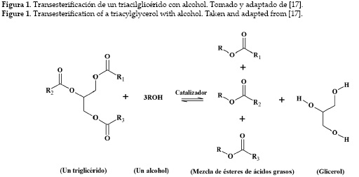 La transesterificación consiste en la reacción de un triéster de glicerilo (triglicérido) con un alcohol para formar alquil ésteres y glicerol. En la figura 1 se muestra una forma simplificada de la reacción de transesterificación de un triacilglicérido.